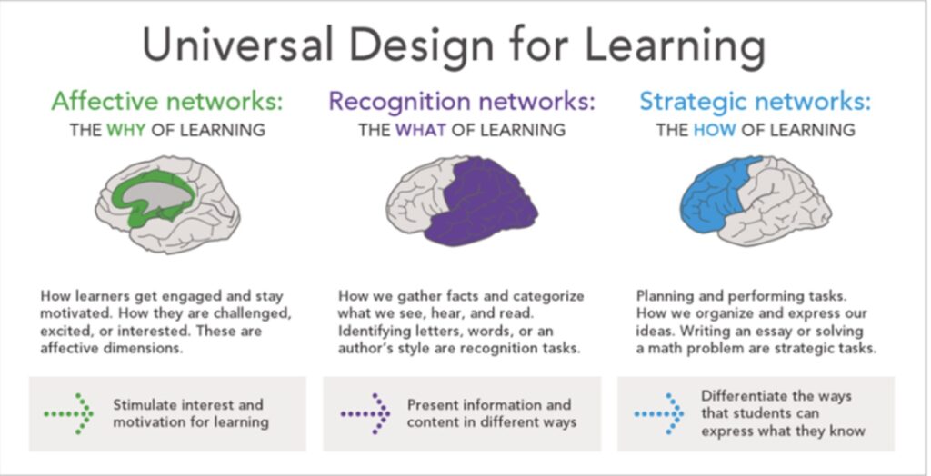 With the first principle, creators are advised to understand the different approaches taken to learning, as well as the unusual or overlooked situations. They are directed to reflect on how their own assumptions about learning could unintentionally limit access to knowledge for some people, which acknowledges the existence of discrimination. The module “Accessible Multimedia” focuses on the inclusivity of people with different learning habits rather than simply labeling it all as a certain type of disability. It highlights the fact that lack of learning is more so caused by the absence of the right resources rather than capability. The second principle shows us that by having tools to help us consume knowledge through different paths, there is a higher rate of success within learning, as it allows us to process the information in different ways. Thisties into to the third principle of reflecting the above info into a learning environment that understands variation in learning, rather than a standard.